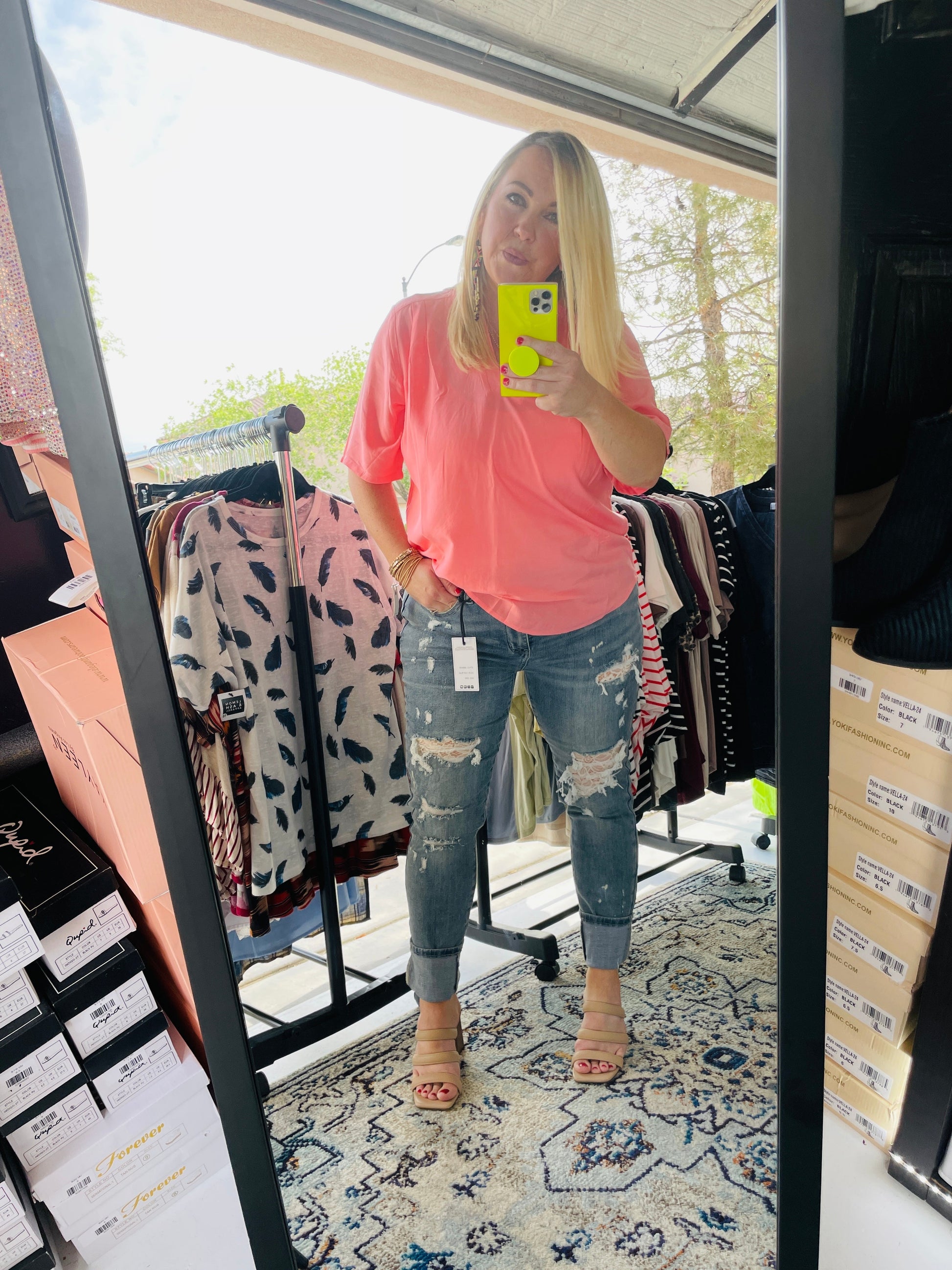 This pair of jeans has a gorgeous light wash and bleach splatter details, along with plenty of distressing and of course, that stunning lace peeking through the openings is amazing! These can easily go dressy or casual depending on how you style them!