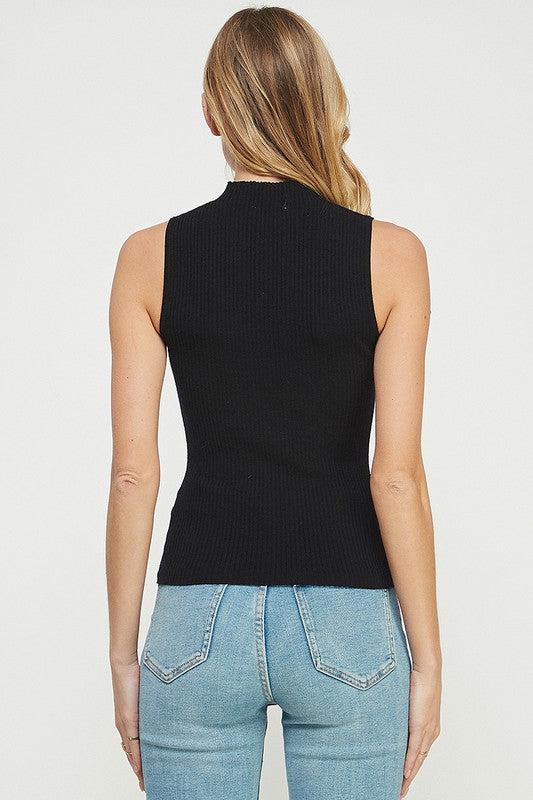 LOW MOCK NECK TANK - BLACK